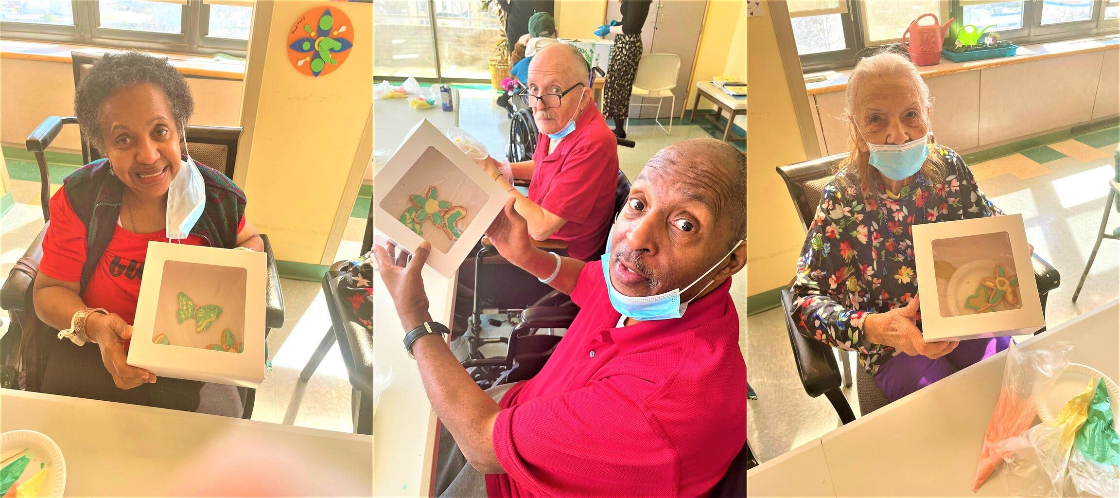 As Easter approaches, residents took part in a tasty Easter cookies decoration class on April 4. Here, the residents took the bunny by the ears and created spring-like Easter bright sugar cookies. These cookies will be put away until Easter Sunday, April 9th. All in all, the smiles of these Martine Center residents tell the whole story.