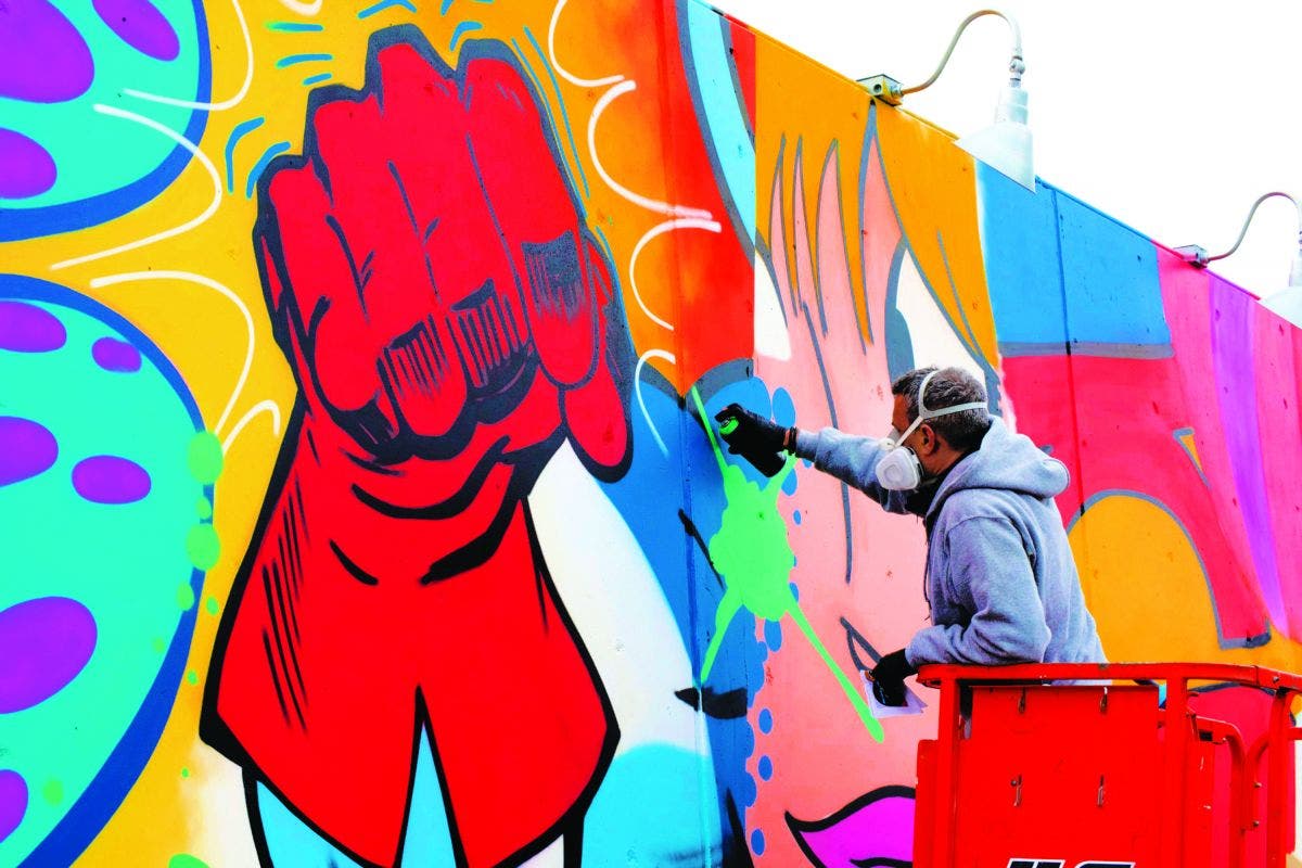 Photo caption: Artist Crash at work on a mural (photo courtesy of the artist)