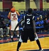 White Plains’ Anthony Williams led all scorers at the half with eight points on 3-6 from the field and 2-2 at the line. 11-16 free-throw shooting is the only thing that kept the Tigers in the game as they shot only 21 percent from the floor. Turnovers were an issue for both sides and with 20 foul calls in the first half the game was played in spurts rather than establishing a flow.