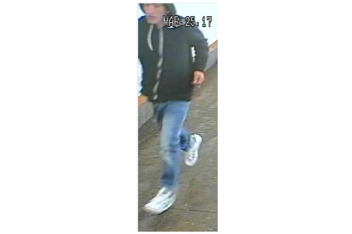 Video surveillance footage caught an image of the suspect, whom police describe as a man in his late teens wearing a black hoodie, jeans and white Adidas sneakers.