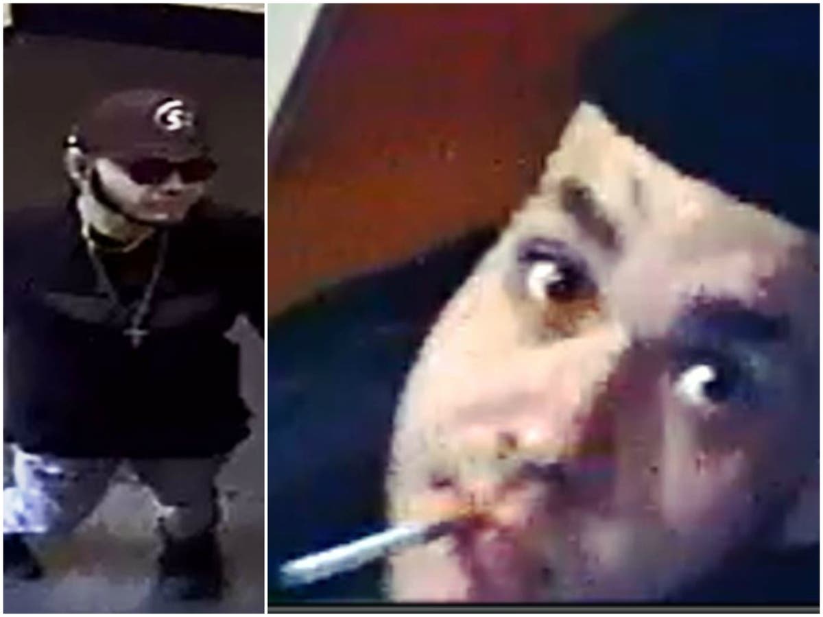 The cunning thief covered a security camera, but not before it showed him walking around in blue jeans, black sneakers, a baseball cap and sunglasses.