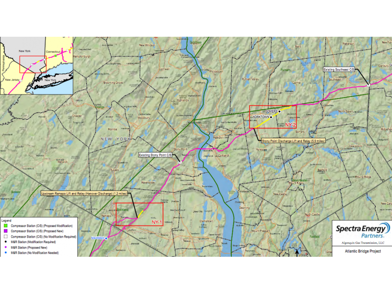 Atlantic Bridge will consist of work expanding more pieces of Spectra’s pipeline through Rockland, Westchester and Putnam counties. The first phase of the expansion, the AIM Project, has already been approved by FERC.