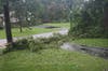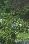 A large branch of a 30-year-old tulip tree on my front yard snapped bringing down with it two smaller branches. As the branches fell, they pulled the power and phone lines from the poles and my house (thus decerating the fall and diminishing the thud). They all landed across the entrance of my driveway, completely blocking passage.
