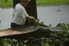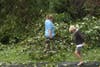 Sultana Drive residents bring out chain saws to clear a driveway.