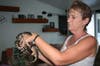 For Tony and Barbara Zullo, a master mechanic and a graphic designer respectively, their house was unscathed. But the biggest stress is keeping their four non-poisonous pythons in above 75 degree environment. Without electricity for the temperature-controlled tanks, the serpents are kept outside during the day. At night, they are put in cloth bags with ties and placed on the master bed between Barbara and Tony to keep them warm.