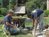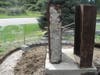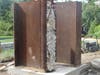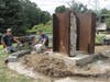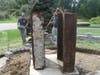 Thursday afternoon two workers from Griffin's Landscaping, a company based in Peekskill, were placing a stone wall around the two beams, as part of the memorial. The words "Never Forget" will be enscribed on the wall in black letters on a brass background modelled after the navy ship U.S.S. New York, which was also built with World Trace Center streel.