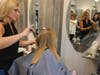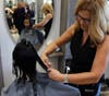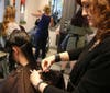 Hair Liberation's Ricci Fonzo opened the salon to the middle school's Hair-A-Thon again this year as volunteer hair dressers were on hand to help in the hair cutting process.