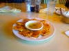 Although we ordered chicken and rice soup, we were served chicken and noodle soup because the kitchen had run out of chicken and rice. The chicken and noodle soup was, unlike the lentil, very bland and oily.