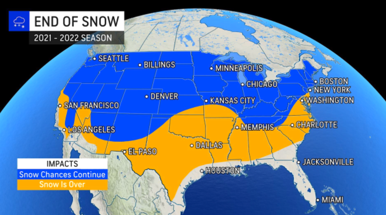 Meteorologists at AccuWeather.com said that two-thirds of the United States could still see some snow in the forecast.