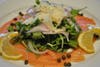 A: Braised beef ravioli, smoked salmon carpaccio and black pepper crusted tuna