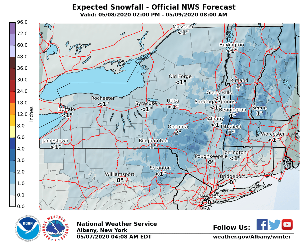 HUDSON VALLEY, NY — Snow? Say it ain't so. Even though the calendar says May, there is a cold air mass affecting the Hudson Valley that will still be in place ahead of arctic air and a developing storm that could mean measurable snow in parts of the region.