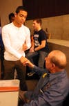 A winner of the Purple Heart, Mann is the author of a memoir about WW II - What I Fought For An Aging Veteran's Love Letter to America. He spent more than an hour talking about his life, answering questions from students and reading from his book.