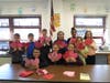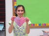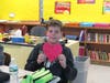 The students decorated hand-cut paper pink and red hearts with artwork and writing kind sentiments -- and were pleased to show-off their nice creations.
