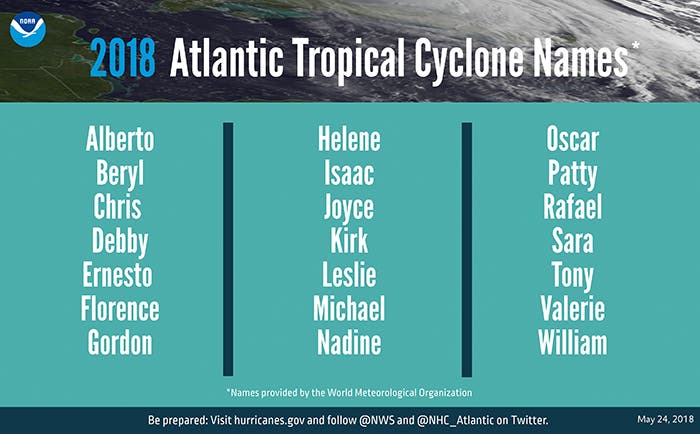 SEE ALSO: Storm Names Released For 2018 Hurricane Season