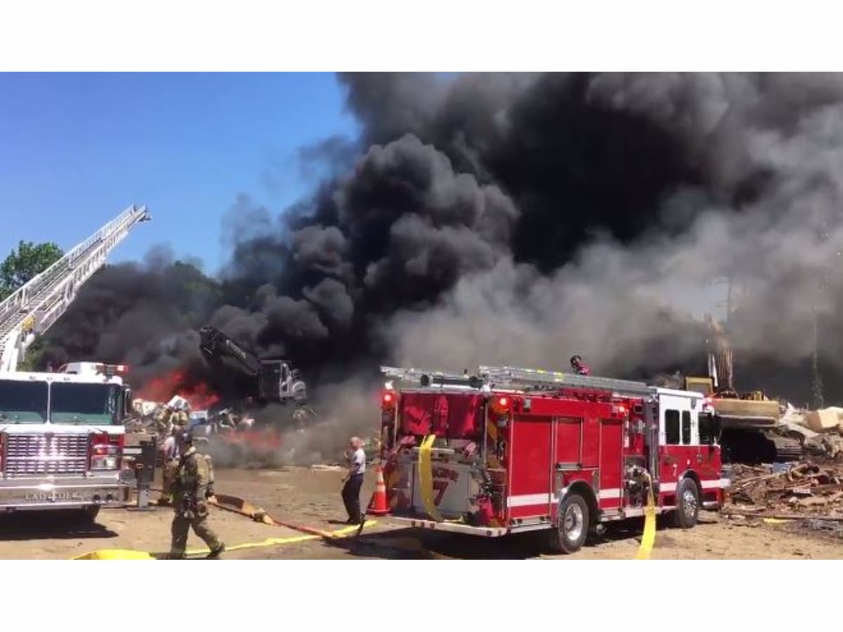 Firefighters were on the scene at a fire at a Charlotte scrapyard Monday afternoon, according to reports.