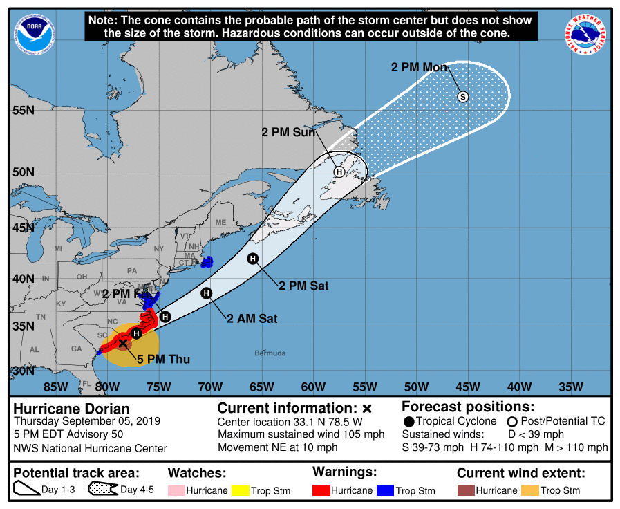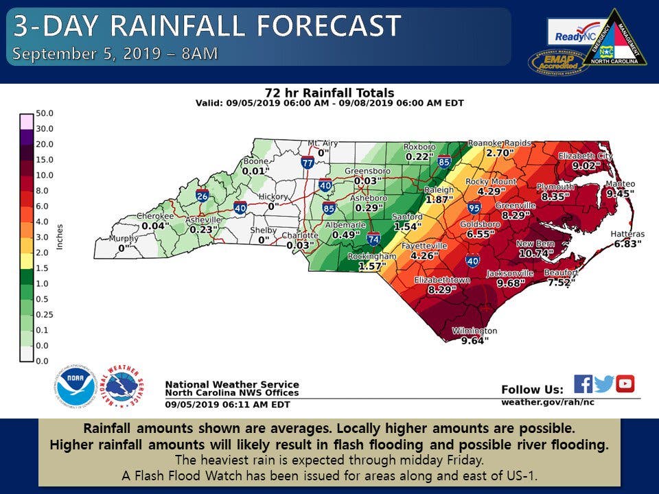 β NWS Wilmington NC (@NWSWilmingtonNC) September 5, 2019