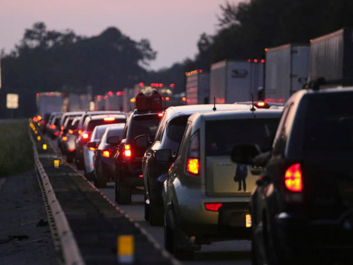 Pictured in this image, traffic backs in the north-bound lanes of Interstate 75 near the Georgia-Florida state line as people flee Hurricane Irma Friday, Sept. 8, 2017, in Jennings, Fla.. (John Bazemore/Associated Press)