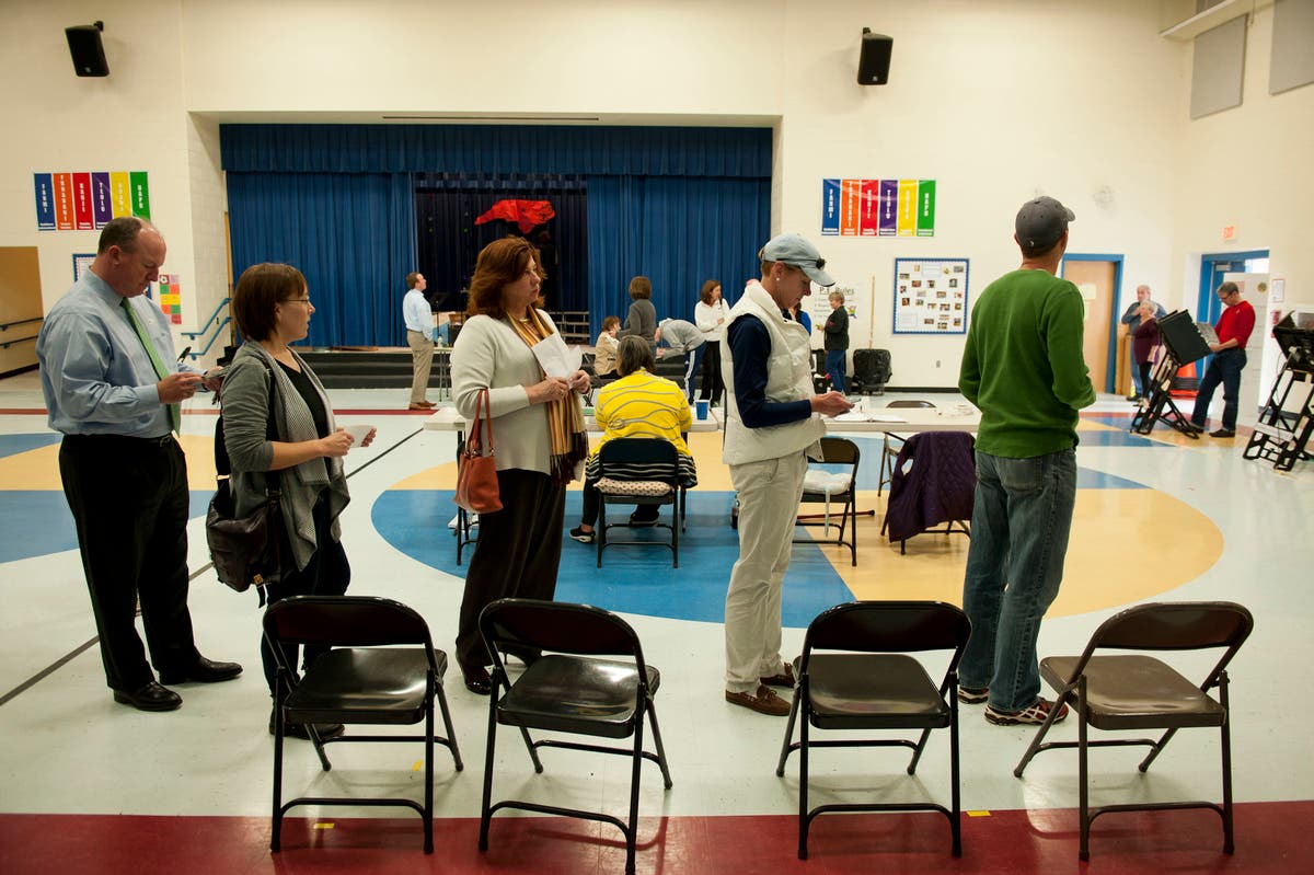 Photo: People stand in line to vote on November 4, 2014, in Cotswold School's gymnasium in Charlotte, North Carolina. Americans head to the polls to cast their vote in the mid-term elections which will ultimately decide what party controls the U.S. Senate. (Photo by Davis Turner/Getty Images) (Photo by Davis Turner/Getty Images)