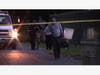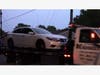 Shortly after 7pm, a flatbed tow truck could be seen removing a white vehicle from the scene. There appeared to be a bullet hole in the left side windshield.