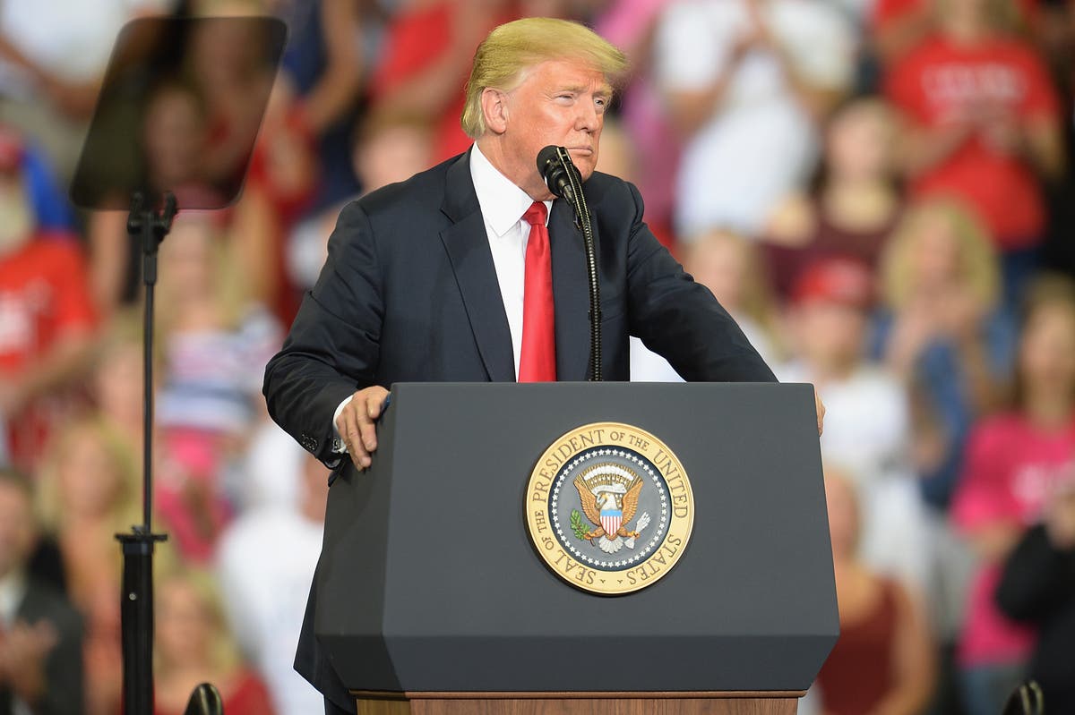 Photo: EVANSVILLE, IN - AUGUST 30: U.S. President Donald Trump delivers remarks at a campaign rally at the Ford Center on August 30, 2018 in Evansville, Indiana. The president was in town to support Republican Senate candidate Mike Braun, who is facing Sen. Joe Donnelly (D-IN) in November. (Photo by Michael B. Thomas/Getty Images)