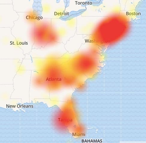 The website Down Detector, which tracks outages in real time, reported issues in nearly every major city on the East Coast. The outages also spread to Midwest cities such as Chicago and Detroit.