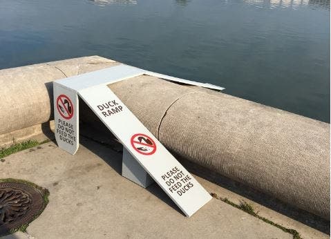 “Ducklings get into the water — often helped there by visitors — and then can’t get out because of the high curb at the water’s edge,” she said in an email. “They will drown from exhaustion or die of starvation unless they have a way to get out of the water.”