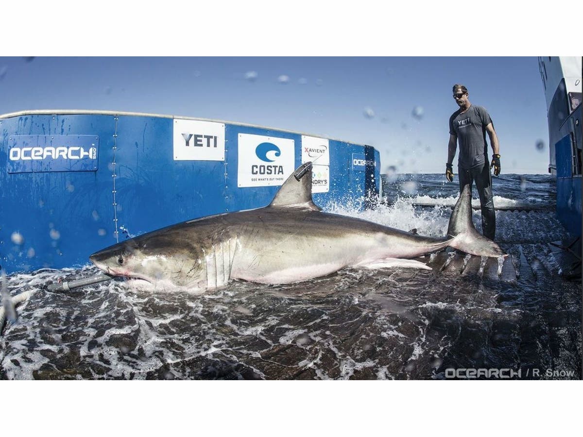 The 12-foot-long shark, who was caught and tagged by OCEARCH March 3 off the coast of Hilton Head, S.C., was named after the community. He is tagged with a fin transmitter that, when he breaks the surface, relays his location, the AP reported.