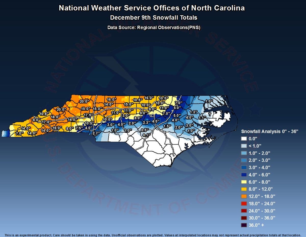 In what was the state’s first major winter storm of the season, prolonged snowfall that began late Saturday and continued into Monday morning throughout much of western and central North Carolina dumped as much as two feet or more of snow in the mountains, Cooper said.