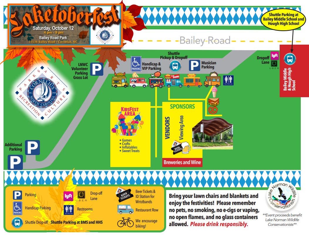 Laketoberfest will run from 4 p.m. until 9 p.m. Saturday, Ove. 12 at Bailey Road Park, located at 11536 Bailey Road Park in Cornelius.