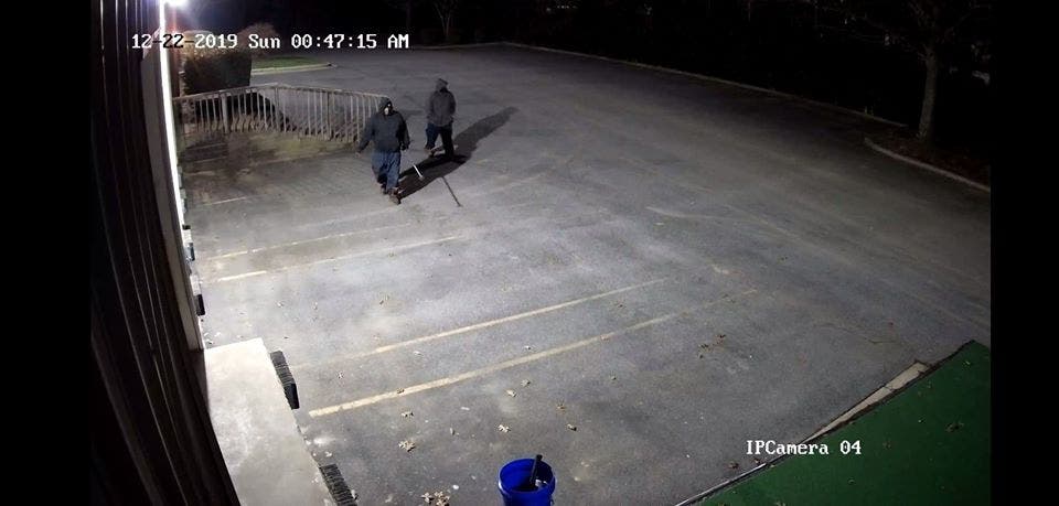 The men are described as wearing dark clothing, and were driving a black SUV similar in body style to a Ford Excursion, as well as a large two-tone Ford pickup truck.