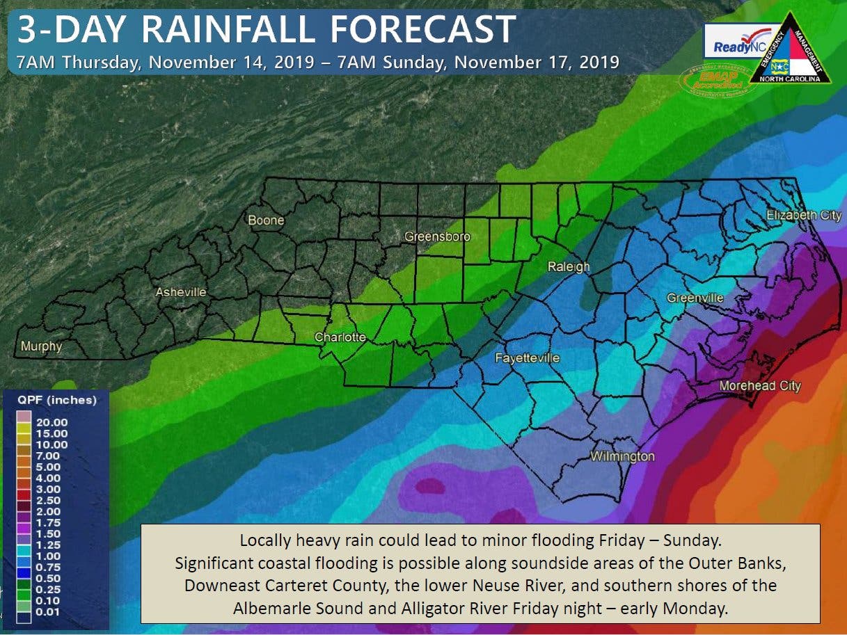 CORNELIUS, NC — Rain and gusty winds are headed back to the Lake Norman area, according to the National Weather Service, which says conditions will begin to turn soggy Thursday evening.