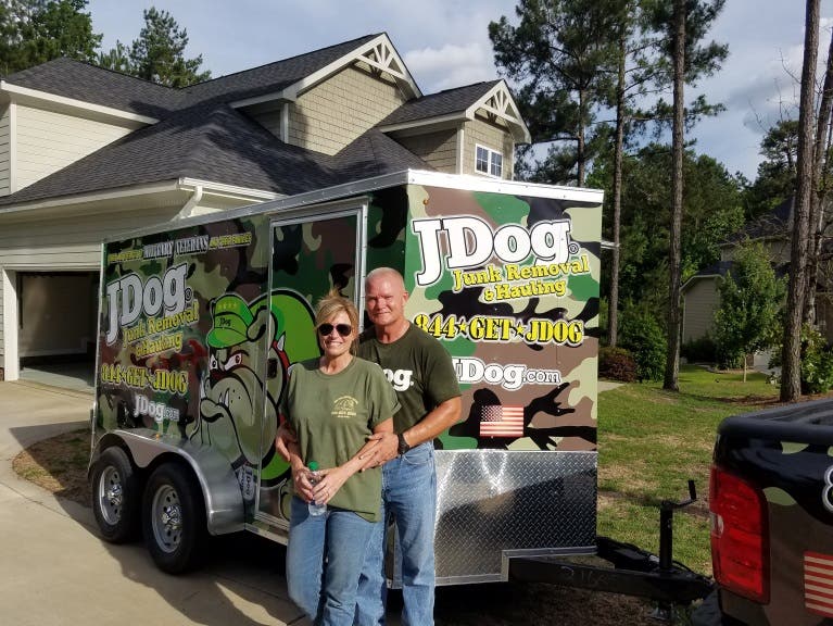 JDog awards franchises exclusively to military veterans and their family members. Franchise owners operate easily recognizable, camouflage vehicles and trailers and wear military-style uniforms. JDog recycles and repurposes a substantial amount of the material they pick up. The Philadelphia-based company works closely with local and national organizations like charitable thrift stores and Habitat for Humanity, as well as local schools, churches and hospitals to donate useful items to those in need.
