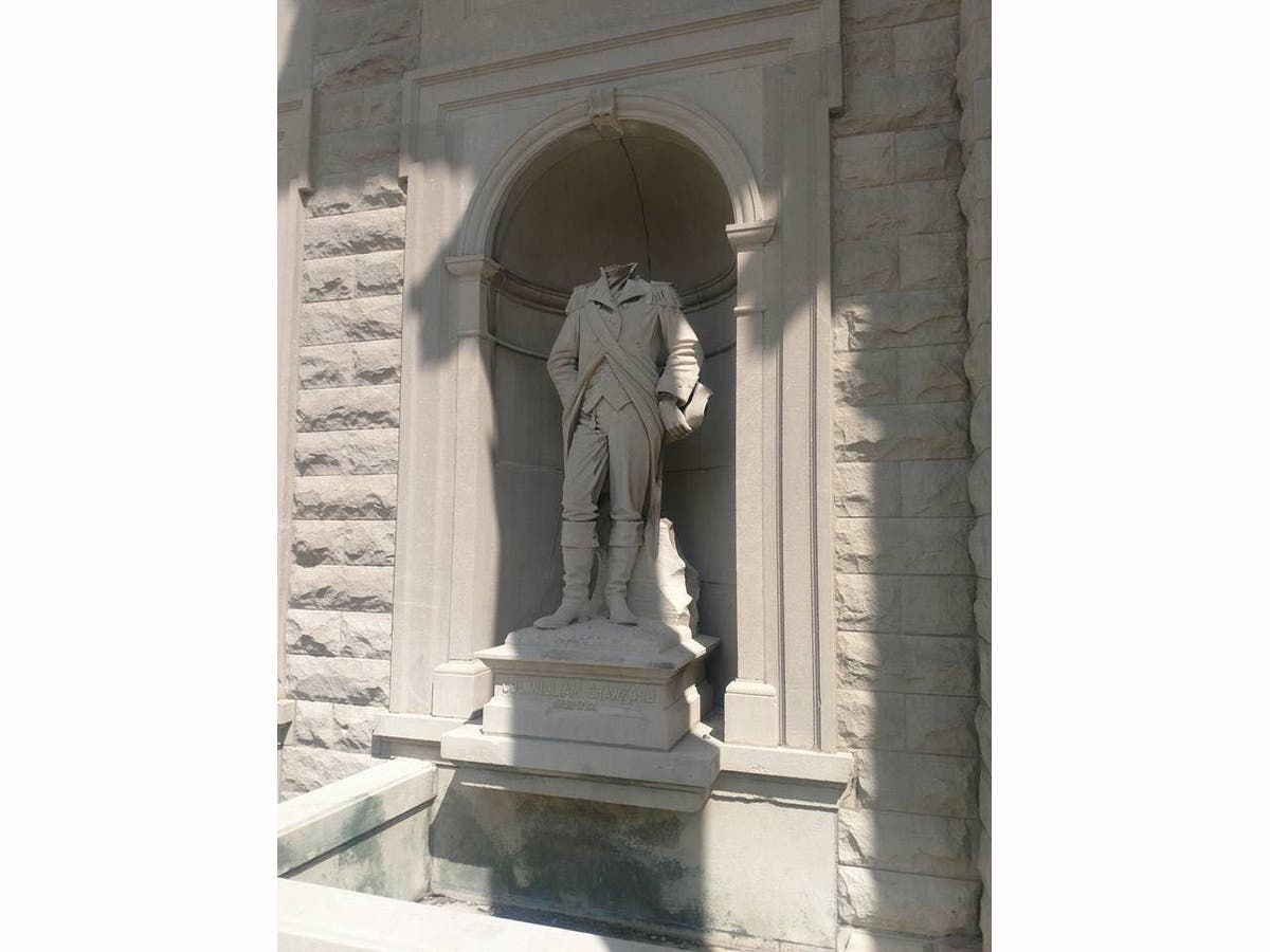 BUCYRUS, OH — Vandals have beheaded a statue honoring Revolutionary War-era Col. William Crawford that stands in front of the Crawford County Courthouse in central Ohio. One former resident isn’t standing for it, and is putting up $1,000 for information that leads to the arrest of whoever is responsible.