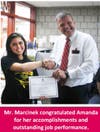 Her instructor, Ms. Germaine Polensek stated, “When I do my worksite visits, she is always upbeat and immediately makes the customers feel welcome and happy to be there.” Mrs. Polensek added that Amanda’s employees evaluated her as “Excellent” in all categories including personal appearance, attendance, human relations, attitude and work performance. “You don’t get these accolades without earning them,” Mrs. Polensek said. Amanda’s employer said she is a model employee whose “norm it is to go above and beyond.”