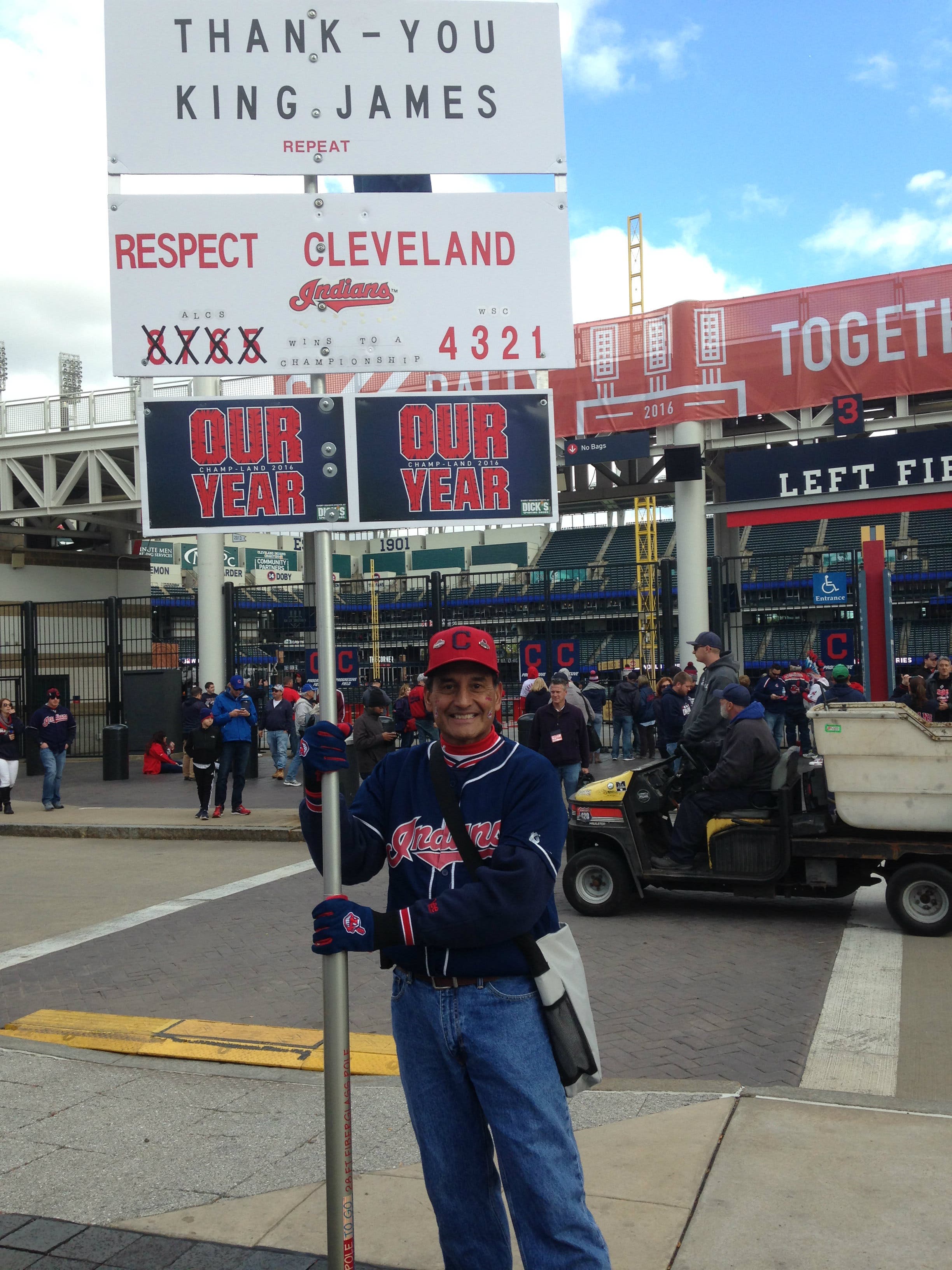 Prior to the game, fans massed outside of both Progressive Field and Quicken Loans Arena. Most were simply basking in the moment, or waiting for the gates to open. A few were hoping to psych up other fans or make a splashy statement.