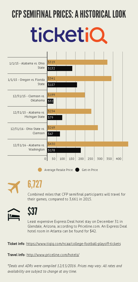 Here's a look at some of the previous ticket prices for CFP Semifinal games: