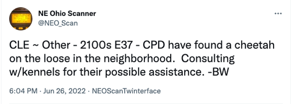 5) A Cleveland neighborhood at East 37th Street and Cedar had a WTF moment Monday when they saw what appeared to be a cheetah slinking down the street. The sighting even made its way to the police scanner and Twitter. One man told 3News he's seen wild turkeys and deer in the 'hood, but has never seen a cat like this. Well, it's not a cheetah. It's a Savannah cat, and it's someone's pet. Another neighbor told police they've seen the big cat being walked on a leash.
