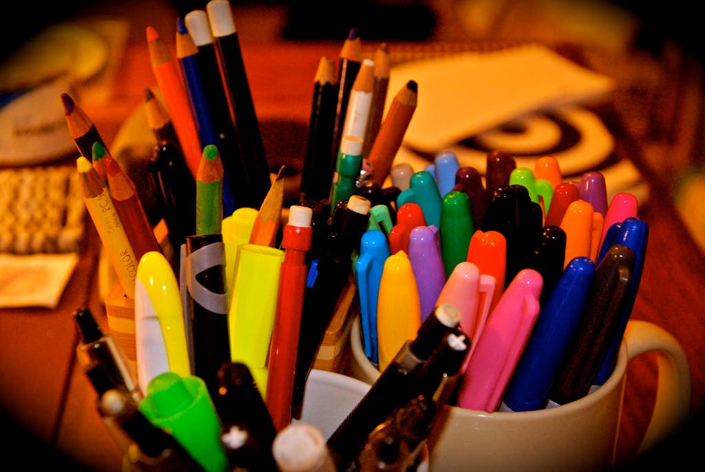 - Writing instruments (pens, pencils, highlighters, markers, etc.)