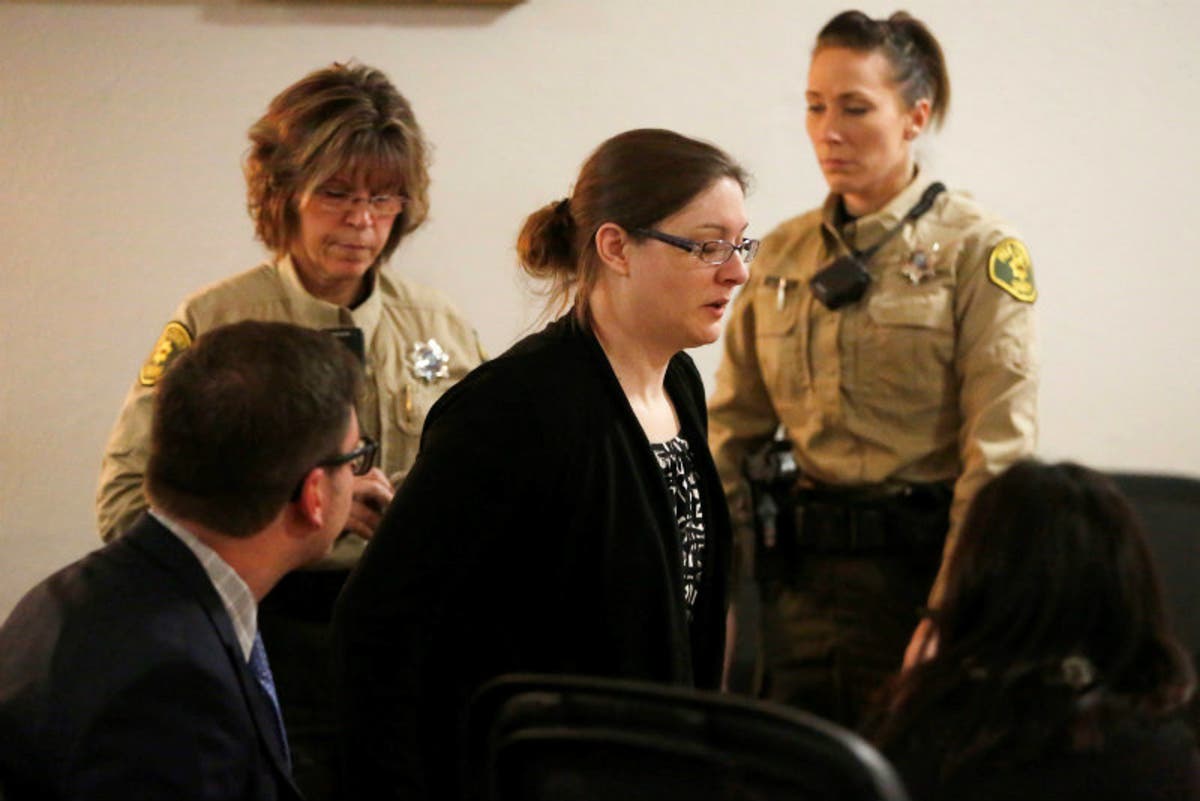 Photo: Nicole Finn stands as she is handcuffed by officers Thursday, Dec. 14, 2017, after a jury found her guilty on kidnapping and murder charges in the starvation death of 16-year-old Natalie Finn at the Polk County Courthouse in Des Moines, Iowa.( Michael Zamora/The Des Moines Register via AP, Pool)