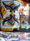 The exhibit features Mexican, Peruvian and Guatemalan Ceramics. The Mexican ceramics include Azulejos tiles, Ken Edwards dinnerware from Tonala, authentic Talavera from Puebla, as well as Barro Negro and green glaze pottery. We also have figurines by the Aguilar family in Oaxaca. The Peruvian ceramics are mainly from Ayacucho.