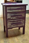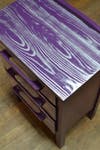 I gave it one coat of primer and three coats of purple paint. Β Once it was all dry, I got started faux bois-ing it.