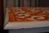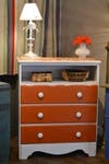 Iβve seen them used for other projects for the home, but this idea hit me as I was deciding what to do with the dresser. Β I had already painted the body white and the drawers orange, but the stark white top needed something. Β I glanced at the floor mat, appropriately lying on the floor, and decided to give it a whirl. Β It was almost the exact size of the top of the dresser, so I busted out a pencil and started tracing.
