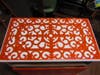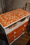 I thought I would share a quick post about how I turned a surprising object into a DIY stencil for my latest piece of furniture in the store.