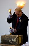 With a few swings of a gold-plated hammer, Mayor Don Robart unlocked a small piece of Cuyahoga Falls history.Β