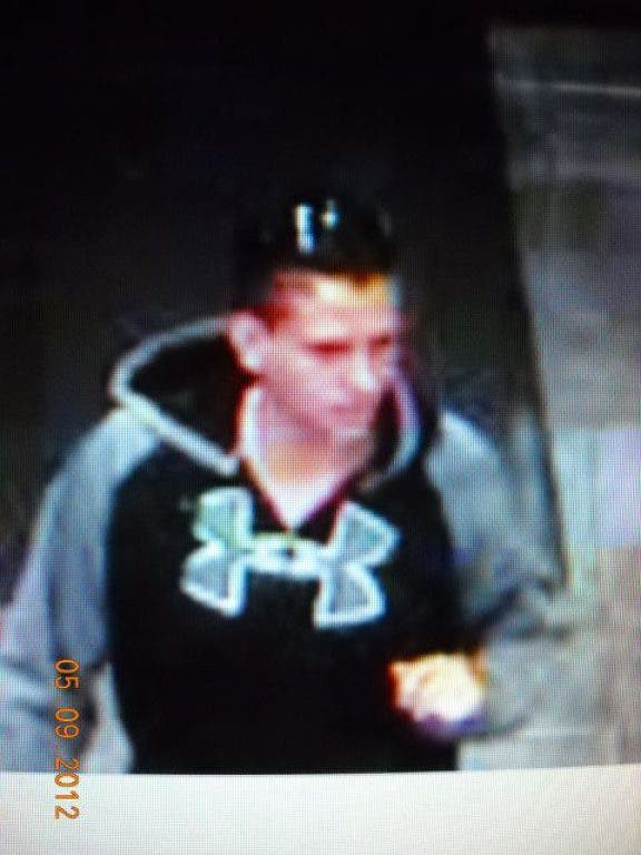 The man is described as a white male, possibly late 20βs to early 30βs, 5β9β tall, brown spiky hair. He wore mirrored sunglasses, a black hoodie with grey sleeves and blue jeans at the time of the robbery.