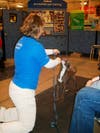 On the far side of the store, several women are couched down in the aisle calling to their dogs to come. As the adult dogs obey the commands, they are showered with praise, given a treat, and bark in agreement of a job well done.