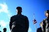 A crowd of more than 100 people, including veterans, their families, students, and members of the Kent State ROTC program filled Risman Plaza outside the Kent State Student Center for the ceremony.
