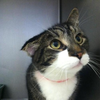 His name may be "Trouble," but the only "Trouble" this guy causes is fun! He loves to run and play! A home with a couple of kids and/or one other playful cat would make him one happy kitty! He has been in shelter care since early February, after hematoma surgery in his right ear. From his foster family to the shelter staff, everyone thinks he's a very sweet, talkative, cuddle bug!