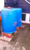 - Drill a small hole in the top of one barrel to receive the rain water.