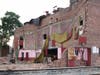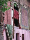 Another layer of the Detroit Theatre has been removed; this time revealing curtains and other fabric hanging off of the old building.